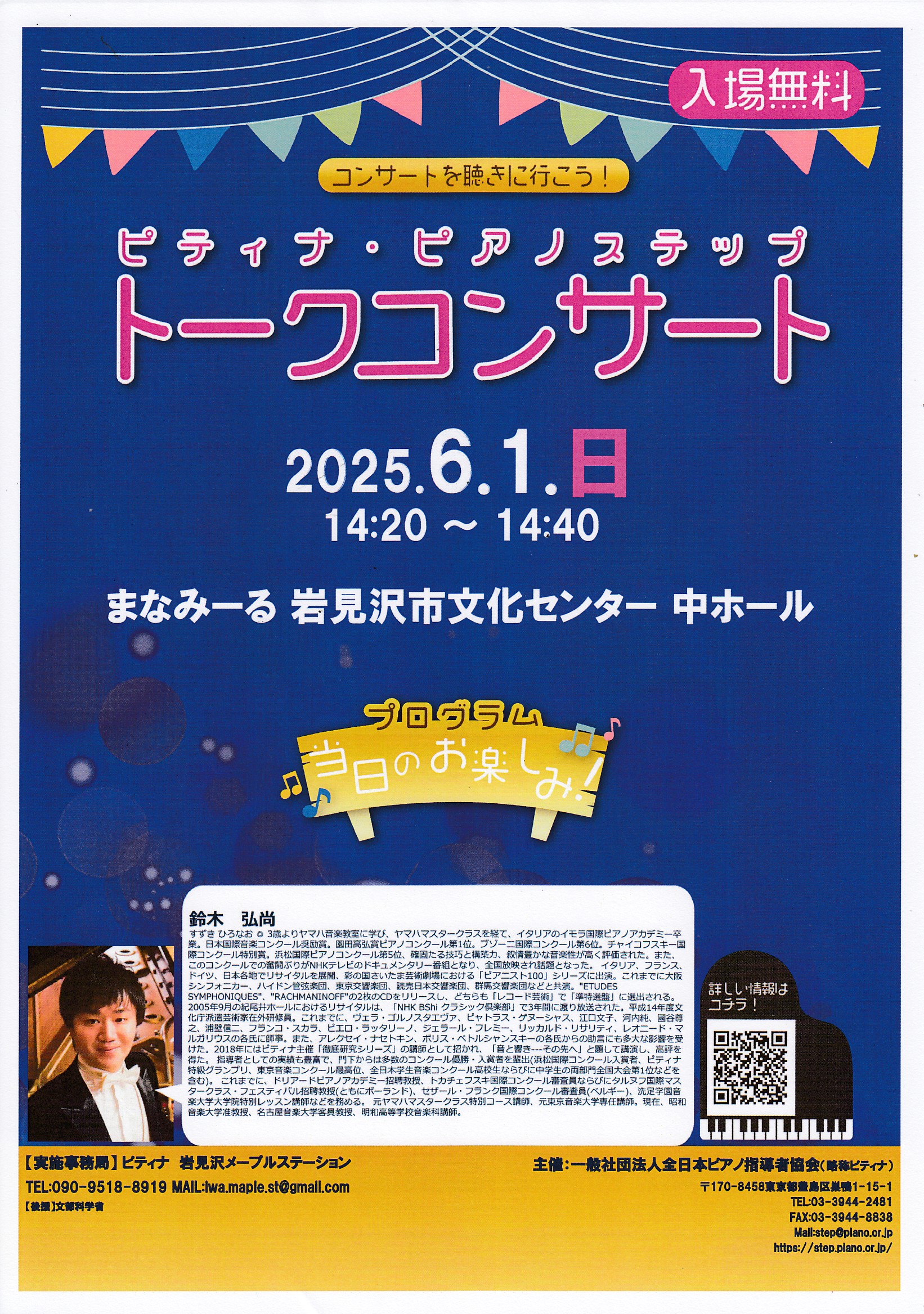 ピティナ・ピアノステップ岩見沢地区「鈴木弘尚」トークコンサート」 |