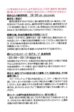 (各部の演奏開始時間、集合時間、注意事項などが記載されておりますので必ずお読みください)