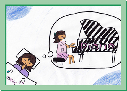 集まった皆さんの絵。実体がないもの、皆さんの頭の中にしかないものを描くわけですから、夢の絵って難しいですよね。絵を見た瞬間にすぐわかるもの、だいたいわかるもの、ちょっとわかりづらいもの。ちょっとわかりづらいものも想像力をかきたてるので逆にそれもまた楽しいですよね。コンサート当日は、場内、みんなの「夢の絵」を鑑賞しながら静かに「夢の曲」を聴き入っておりました♪